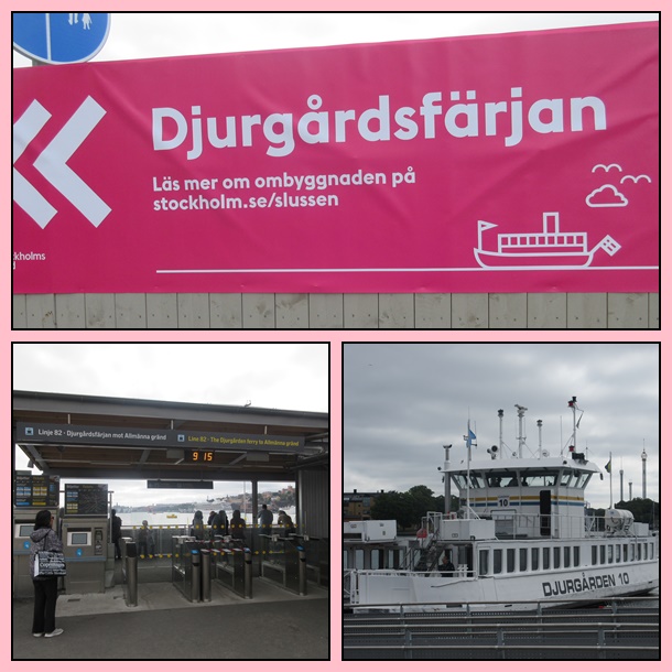 Pertama kami naik kereta dan turun di Stockholm Central. Dari situ baru menuju Djurgarden. Ada 2 cara ke Djurgarden. Bisa naik tram atau naik kapal. Kami memilih pergi naik kapal dan pulang naik tram. Mau coba semua donk !! Oke, kalo gitu dari Stockholm Central kami naik metro ke Slussen. Keluar station, jalan kaki menuju pelabuhan ferry khusus untuk tujuan Djurgarden.