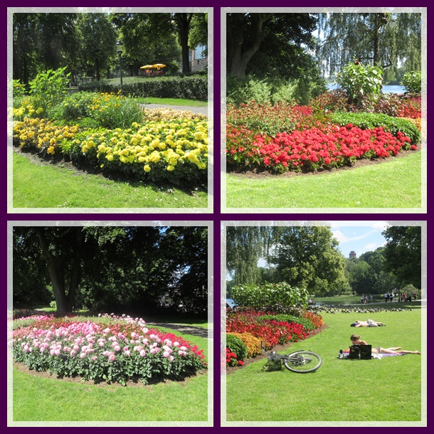 Selain burung, tidak sedikit penduduk lokal juga menikmati cuaca cerah ini dengan berjemur. Berhubung mereka ga punya ‘real beach’, jadinya berjemur ya di taman. Jadinya banyak yang buka baju di sini (cowo dan cewe) atau pakai bikini saja. Lucu deh liat mereka pakai bikini trus pake lotion trus gelar tiker trus tiduran di taman. Haha.. Tuh di foto bunga2, di balik tas itu ada yang menarik loh. Cuma kami ga berani ambil foto dari sisi sono, ga sopan lah.