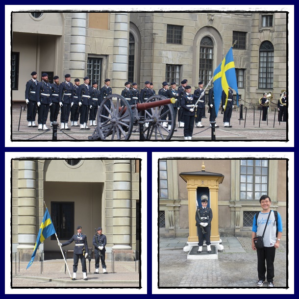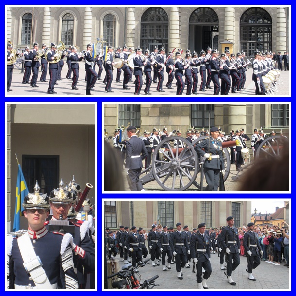 Prosesi pergantian jaganya berlangsung singkat. Baju penjaga Royal Palace Stockholm ini juga baju perwira biasa saja. Lebih bagus pakaian yang dikenakan personel marching bandnya dengan topi menarik. Yang justru keren dan menarik adalah penampilan marching band setelah prosesi pergantian penjaga ini. Bahkan sampai ada seorang MC (master of ceremony) yang menceritakan kehebatan marching band ini. Mereka menampilkan keahlian membentuk berbagai formasi barisan, melemparkan tongkat mayoret dan para pemain drumnya menampilkan keahlian mereka memakai stick dan memukul drum.