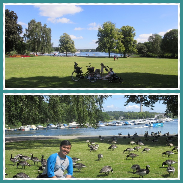 Kami senang jalan2 di Djurgarden ini. Ada danau yang luas dan tenang. Banyak burung2 yang juga yang memenuhi taman. Siang ini cuaca tergolong panas, matahari bersinar cerah. Ini adalah suhu terpanas selama perjalanan kami di Scandinavia, yaitu sekitar 20-24 derajat. Hihi… kulit kami udah adaptasi sama suhu bule nih, suhu segitu udah berasa panas banget. Di sini kami baru bisa lepas jacket.