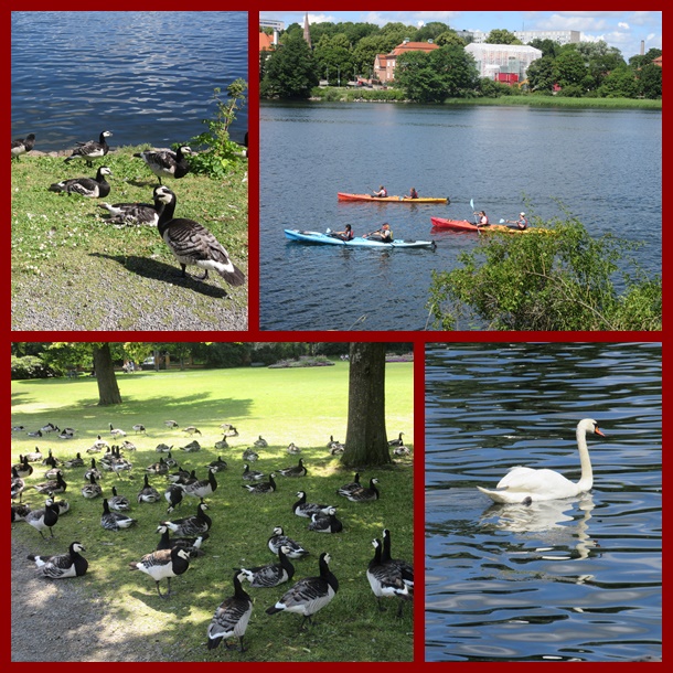 Di danau, ada saja penduduk yang main kayak maupun berenang. Ada tandanya di mana tempat yang boleh berenang. Bisa berenang sama bebek dan angsa tuh. Senang ya punya kota kaya gini, menyatu dengan alam. Para unggas ini juga bahagia sekali bersama kumpulannya.