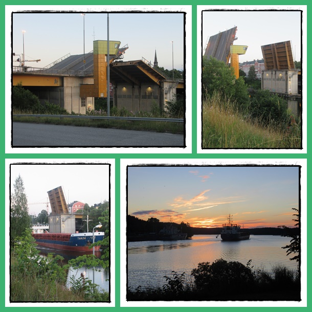 Kota Sodertalje yang mungil ini sangat sepi. Maklum hari Minggu, semua toko tutup. Orang2 kalo ga di rumah ya main ke pusat kota Stockholm kelihatanya. Apalagi cuaca cerah hari ini. Kami menyeberangi jembatan yang menghubungkan antara area pusat kota Sodertalje dengan area di mana flat Noelia berada. Tak lama setelah kami menyeberangi jembatan tersebut, jembatan terangkat di kedua sisinya karena ada kapal barang yang sangat besar yang melewatinya.