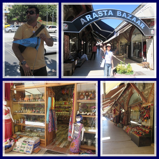 Selesai makan, kami berjalan kaki ke arah Sultan Ahmet, pusat turis. Dipandu oleh tour guide yang membawa bendera biru touristanbul. Masuk ke Arasta Bazaar, pasar souvenir dan kain yang siang ini cukup sepi. Dan akhirnya tembus di area Blue Mosque.