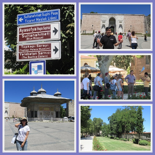 Karena ini hari Jumat, maka siang ini Blue Mosque sedang dipakai untuk Sholat Jumat dan sementara ditutup untuk turis. Maka guide membawa kami ke Topkapi Palace dulu. Jalan lagi sedikit lebih jauh dan akhirnya sampailah kami di Topkapi Sarayi (Topkapi Palace Museum).