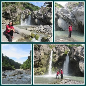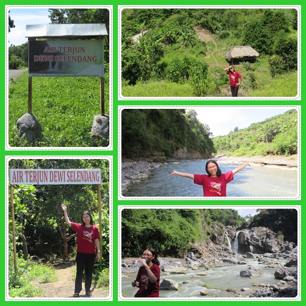 Untuk menuju air terjun Dewi Selendang, kita harus menyeberangi sungai ini. Ketinggian air sungai kira-kira sebetis. Kami cukup beruntung karena air sungainya tidak terlalu tinggi. Jika air sungai tinggi dan deras, tidak aman untuk bisa menyeberangi sungai dan tentu tidak bisa mendekati air terjun tersebut. Setelah itu kami kemudian berjalan ke arah hulu sungai lewat batu-batu di pingir sungai. Akhirnya tibalah kami di air terjun Dewi Selendang. Suasananya yang sejuk menggantikan kelelahan dan perjalanan yang menguras keringat.