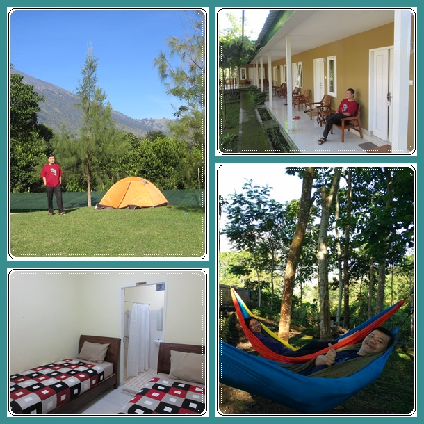 Setelah beristirahat sekitar 10 menit, kami pun kembali naik ke mobil. Tidak sampai 20 menit, kami sudah tiba di Rinjani Garden, tempat kami menginap. Wah, ramai sekali. Rupanya ada rombongan menginap, sekitar 100 orang. Mereka sedang makan malam dan mengadakan acara di taman.