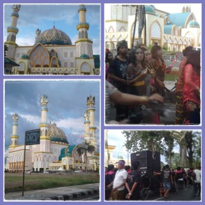 Kami sempat melewati kota Mataram, melihat masjid Hubbul Wathan Islamic Center yang sangat megah dan iring-iringan pawai di pinggir jalan. Rupanya itu pawai “nyongkolan” yang merupakan tradisi lokal Lombok. Sepasang pengantin baru diarak beramai-ramai menuju kediaman sang pengantin wanita. Iringan anak-anak ada di depan sekitar 20 orang, lalu di belakangnya ada pengantin wanita dipayungin dan berjalan bersama para wanita sekitar 20 orang, lalu di belakangnya ada pengantin pria dipayungin dan berjalan bersama dengan para pria sekitar 20 orang juga. Paling belakang ada iringan keyboard dan gitar berjalan beserta speaker besarnya, seru banget.