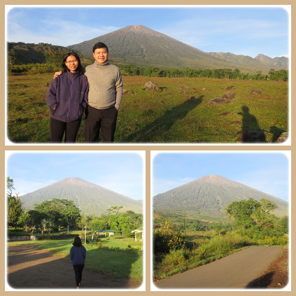 Pagi hari, kami berjalan mendekati Gunung Rinjani. Ah, jelas sekali. Kami berfoto terakhir kali dengan latar belakang gunung Rinjani. Kami menikmati suasana pagi yang sangat relax dan segar. Rasanya sangat menyenangkan dan ingin lebih lama berada di sini.