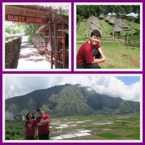 Selanjutnya kami diajak ke bukit Selong. Berupa gundukan tanah tinggi yang sudah diberi pijakan tangga kayu. Naiknya pun mudah dan cepat. Tiket masuknya Rp. 3.000,- per orang dan Rp. 5.000,- per mobil. Lagi-lagi tanpa karcis namun kami diminta mengisi buku tamu ala kadarnya. Dari atas bukit Selong, kami bisa melihat bukit Pergasingan. Hati-hati ya jika mau berfoto, di sini banyak kotoran sapi, hehe.. ada yang saking asyiknya mundur2 bergaya akhirnya kena ranjau deh.