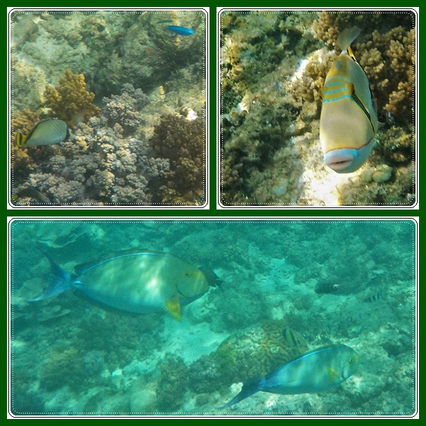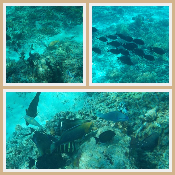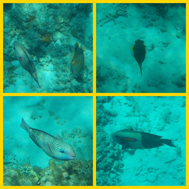 Sayang foto2nya kurang jernih, karena lautnya biru dan kebanyakan ikan berada di kedalaman. Padahal matahari bersinar terik sampai kulit kami pun gosong dan perih.