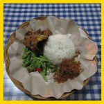 Langit sudah mulai gelap. Kami harus meninggalkan lokasi Batu Payung karena air laut mulai naik dan kami harus segera ke airport. Di dekat airport, kami mampir makan malam di RM Cahaya yang menjual Nasi Balap Puyung. Puyung juga merupakan nama salah satu desa yang ada di Lombok. Rasanya enak ! Murah lagi.. cuma 10 ribu seporsi. Kalo tambah sepotong ayam kampung juga cuma 16 ribu. Begini penampakannya :