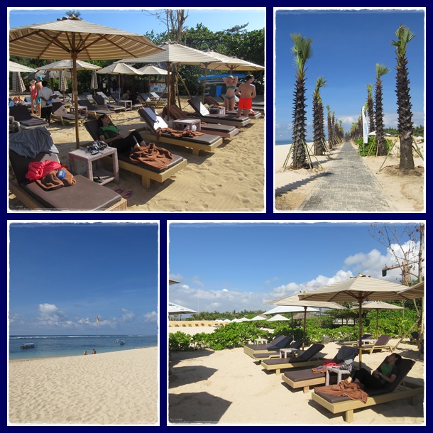 Pantainya sangat panjang dan luas dengan ombaknya yang cukup tenang. Pasirnya putih bersih, dengan butiran seperti biji merica. Mirip dengan pantai Kuta di Lombok. Ternyata di sepanjang garis pantai ini, berdiri hotel2 mewah yang punya akses langsung ke pantai. Salah satunya Hotel St. Regis, yang tepat di sebelah Beach Club Novotel. Hotel St.Regis adalah hotel mewah tempat menginap Raja Salman dari Arab Saudi, saat bulan Maret lalu ke Bali.