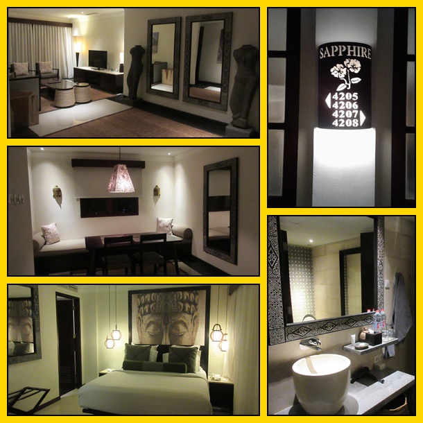 Akhirnya kami baru tiba di hotel jam 8 malam. Begitu ditunjukkan kamarnya, wow… surprise banget, Dibilangnya dapat kamar deluxe, tapi yang kami dapat adalah 1 bedroom apartment. Menurut staf hotel, bangunan yang kami tempati (tower sapphire) adalah milik Accor sedangkan ada tower2 yang milik Novotel. Ooh, jadi rupanya ada pembagian tower2 di hotel ini. Sebagai tamu undangan Accor, kami dapat tower miliki Accor yang katanya sih jauh lebih luas daripada yang milik Novotel.