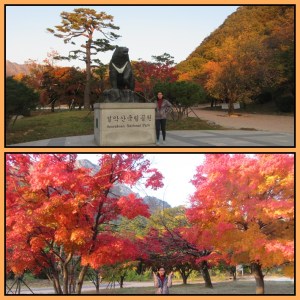 Korea Selatan memiliki kurang lebih 20 National Parks dan Seoraksan National Park yang kami kunjungi pagi ini disebut memiliki “best landscape and the most beautiful autumn foliage in the country”. Harga tiket masuk adalah KRW 3.500 per orang. Di dalam National Park ini, ada banyak rute, baik untuk pendakian, melihat air terjun, maupun wisata alam lain. Tidak mungkin semuanya dijelajahi, jadi kami memilih 2 saja yaitu Gwongeumseong Fortress dan Ulsanbawi (Ulsan rock) / Heundeulbawi (Heundeul rock) yang cukup terkenal di kalangan wisatawan.