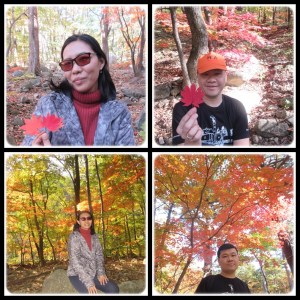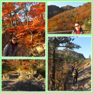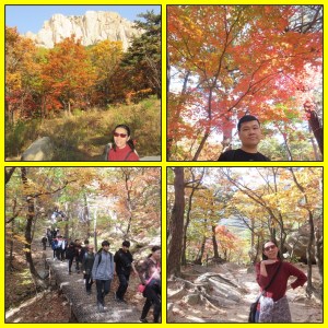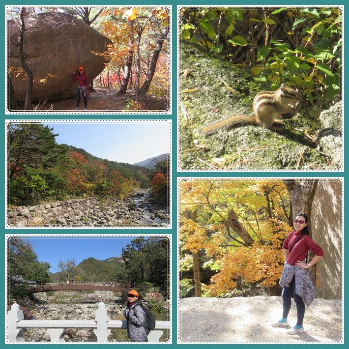 Target kami adalah Heundeulbawi. Satu kilometer pertama, rute dilalui dengan cukup mudah. Jalurnya sedikit mendaki dan jalanannya masih baik karena dicor. Lewat dari 1 kilometer, perjuangan sebenarnya baru dimulai. Jalanannya berbatu dan terus menanjak. Namun yang bikin kami tetap semangat jalan adalah kami berjalan di tengah2 hutan, sungai, dengan pohon2 cantik berwarna merah, orange, kuning, hijau.