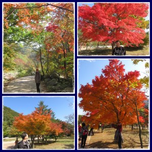 Wah, di depan hotel ternyata antrian kendaraan masih panjang. Kami langsung berpikir positif, berarti Mt.Seorak pasti lagi bagus2nya untuk melihat fall foliage alias daun warna warni. Jadi banyak sekali orang Korea yang berwisata ke Mt.Seorak. Benar saja, di depan hotel ada pohon2an yang daunnya merah. Cantik banget ! Ada juga yang daunnya kuning, Duuh… senang banget bisa melihat pemandangan ini.