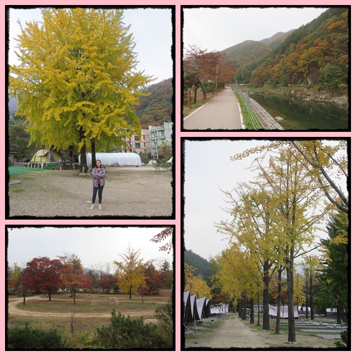 Tiba di hostel, kami langsung bertemu dengan pemiliknya, seorang wanita yang ramah. Untuk pembayarannya dia minta cash sebesar KRW 90.000 untuk 2 malam. Kamar kami ada balkon. Bisa lihat sungai yang airnya sangat bening hingga dasarnya terlihat. Di belakangnya ada deretan perbukitan dengan pepohonan warna warni yang sangat cantik. Ga salah deh menginap di sini. Kami memang suka area pedesaan dengan pemandangan alam dan sepi seperti ini.