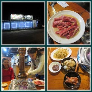 Restoran ini sangat ramai. Dagingnya sudah dibumbui oleh mereka. Tinggal dipanggang saja. Selain daging, disedikan juga selada, tauge, kimchi, bawang putih dan bawang bombay dengan soy souce. Ada juga cocolan saus untuk daging BBQ nya yang memang sangat enak, ada rasa tauco nya. Kami sempat dibantu oleh anak perempuan yang punya restoran ini bagaimana makan Korean BBQ. Dia satu2nya yang bisa bahasa Inggris di resto ini.