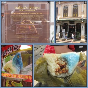 Selain itu, kami menemukan satu makanan menarik, katanya juga khas Malaka. Namanya Nyonya Dumpling. Tapi bukan pangsit ya. Ini bacang dengan warna biru di salah satu ujungnya. Warna birunya berasal dari bunga “butterfly pea” jadi pewarna alami. Kami beli di salah satu kedai, tapi ga bisa makan di tempat. Jadi kami bawa saja dulu. Nanti makannya setelah dari museum saja. Harganya RM.6