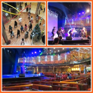 Siang ini cuacanya ga sepanas kemarin. Santai2 ah di deck kapal. Ada pelajaran zumba kali ini. Banyak juga yang ikut di depan panggung. Ada juga yang ikutan ber-olahraga dari deck 12 atau di bagian atas panggung. Ini yang malu ke depan panggung tapi penasan pengen coba, hehe.. Kami duduk2 santai di deck 12 sambil melihat2 suasana. Selalu ada acara di area pool, selalu ada makanan di kapal. Kurang apa lagi coba. Kami sih merasa kurang waktu, Jeff yang pengen belajar bahasa Italy di salah satu ruang jadi ga bisa ikutan karena bentrok dengan acara Travel Talk.