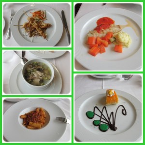 Kami pun memilih tanpa bisa membayangkan seperti apa makanan yang kami pilih. Ada yang datang mempesona, sangat enak seperti tiramizu, iyalah kan ini kapal Italia, yg khas Italia harusnya enak. Ada yang sudah sesuai dugaan, seperti main course steak, prawn, salad dan soup. Ada juga yang di luar dugaan dan rasanya ajaib. Contohnya, Diana pesan appetizer dengan nama mozarela..bla..bla.. yang keluar hanya seiprit bentuk warna putih lunak dihias dengan 3 slice tomat. Ternyata itu adalah keju dimasak saudara2… haha.. untung pernah makan waktu di Finland. Bisa baca di trip Skandinavia (2016).