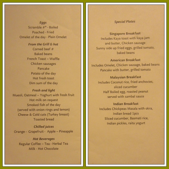 Okelah, kalo begitu kita lanjutkan dengan sarapan buffet saja ya di Sinfonia. Nah, di sini baru deh puas.. bisa ambil macam2 yang kelihatannya enak sampai puas. Buffet untuk breakfast hampir sama loh dengan buffet untuk lunch atau dinner. Jadi kenyang banget.
