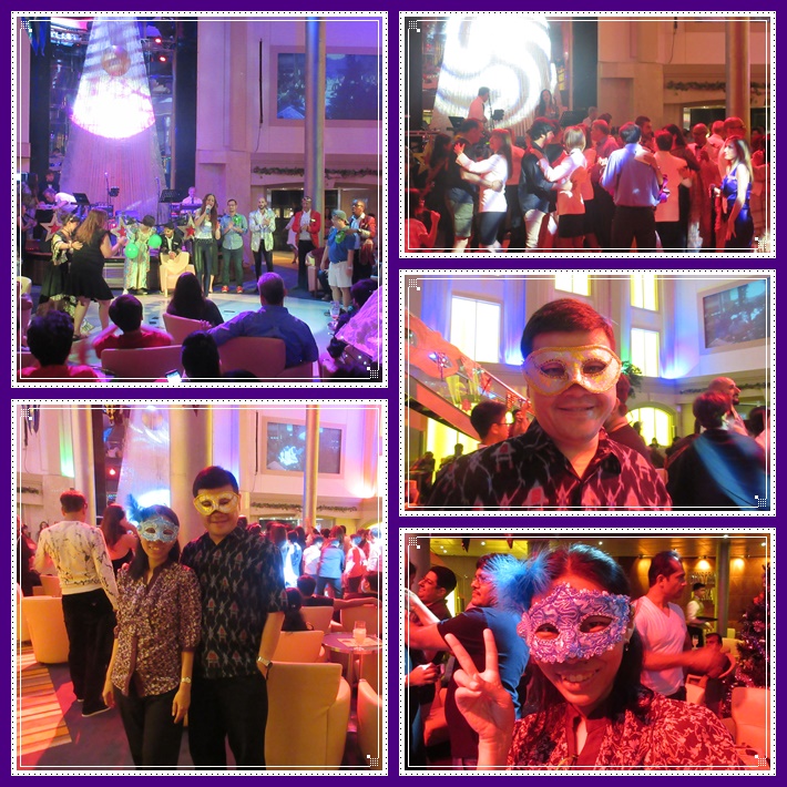 Untuk 2 acara tadi kami hanya duduk menonton saja. Nah, yang ditunggu-tunggu tiba. CARNIVAL OF VENICE PARTY. Kami memang pernah ke Venice dan suka sekali dengan suasananya. Bisa baca di trip Venice (2012). Jadi kami tau juga soal pesta topeng yang terkenal di sana. Nah, kali ini karena kapal Italia, maka mereka mengadakan pesta topeng seperti yang di Venice.