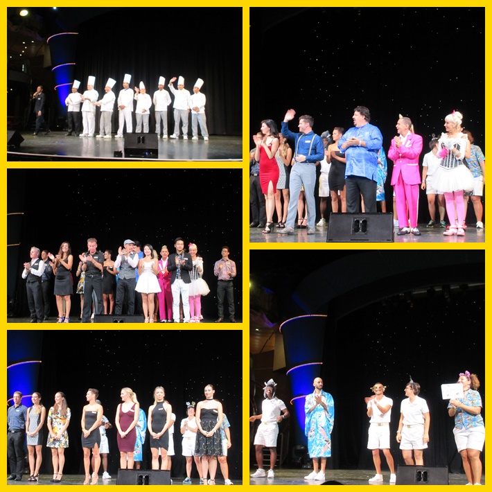 Dari bagian dapur, restoran, cleaning service, senior officer hingga para artis Costa. Mereka semua naik ke panggung, diperkenalkan dan diberikan sambutan meriah oleh para penumpang. Paling banyak adalah crew dari Indonesia dan India. Ada juga dari China, Phillipine, dsb. Mereka semua mengucapkan selamat tinggal, karena besok cruise ini sudah berakhir.