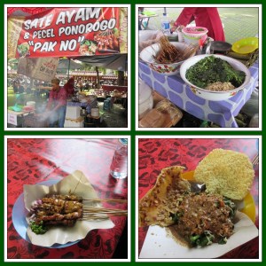 Sarapan dulu ah di tenda makanan yang berjejer di situ. Belum semuanya buka karena masih pagi. Akhirnya kami memilih sate ayam Ponorogo seharga Rp. 22.000 dan pecel Ponorogo seharga Rp. 15.000. Enak banget loh !