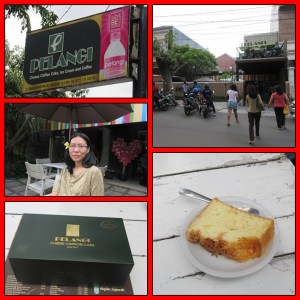 Jam 16.00 kami janjian bertemu dengan 2 teman baru kami di Semarang yaitu Lia, CS Semarang, dan Erina, CS Medan, yang sedang studi di Semarang. Kami ketemuan di lobby Novotel yang ada di seberang hotel kami. Dari Novotel kami diajak ke PELANGI Café di jalan Singosari Raya. Makanan andalannya adalah Cheese Chiffon Cake yang memang enak banget ! Kami ngobrol santai sambil menunggu waktu malam tiba karena kami mau pergi makan malam di Semawis yang terkenal itu.