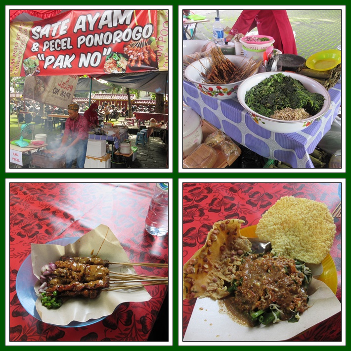 Sarapan dulu ah di tenda makanan yang berjejer di situ. Belum semuanya buka karena masih pagi. Akhirnya kami memilih sate ayam Ponorogo seharga Rp. 22.000 dan pecel Ponorogo seharga Rp. 15.000. Enak banget loh !