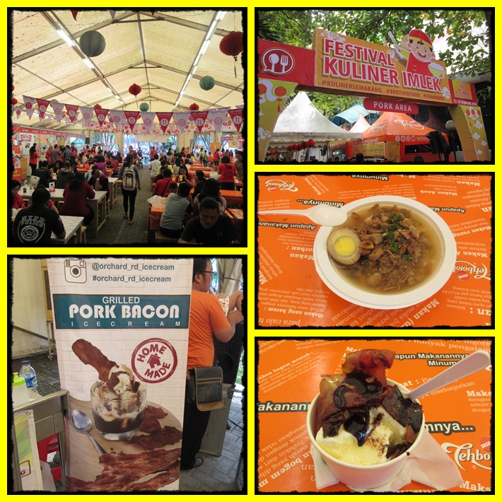 Lanjut lagi, kami menyeberang ke depan lumpia Mbak Lien. Ada pusat belanja Pasaraya Sri Ratu. Menariknya, saat Imlek ini digelar Festival Kuliner Imlek. Di dalamnya ada puluhan penjual makanan. Nah, tempat makanan pork dan non-pork dipisah dan sudah ada tandanya sehingga tidak perlu khawatir salah tempat.