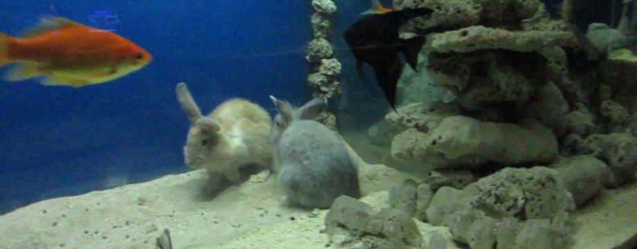 Biasanya semua spesies akan ada informasi yang ditempelkan di aquarium sebagai edukasi. Tapi yang ini kok tidak ada ya ? Hanya ditulis Kelinci Laut Batu Secret Zoo. Hm.. ada yang aneh. Setelah diperhatikan lebih dari 5 menit, tidak fokus ke kelinci tapi ke sekelilingnya, maka ketahuan deh rahasianya. Hebat ! Namanya juga “secret” zoo.