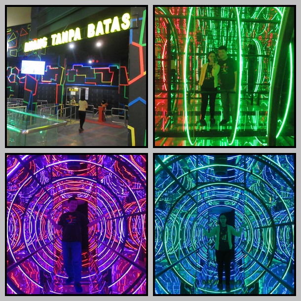 Sudah malam nih, kita coba 1 wahana lagi deh. Hm.. Infinity Room saja atau disebut Ruang Tanpa Batas, sepertinya seru. Harga tiket normalnya Rp. 30.000,- Tapi karena promo bulan puasa, sehingga discount 40% menjadi Rp. 18.000,- per orang