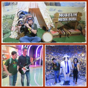 Di lantai 2 terdapat zona2 sesuai aliran musik. Mulai dari lagu2 Indonesia jaman dulu, musik jazz, pop, rock, sampai dangdut pun ada. Bahkan kita bisa karaoke-an loh di zona musik dangdut ini. Terdapat display patung lilin tokoh2 musik walau ga semua mirip dengan aslinya, tapi ya lumayan lah, hehe… Ada Celine Dion, Michael Jackson, Eric Clapton, dll. Nah sebenarnya di Jatim Park 3 ini ada satu wahana lain, namanya The Legend Star yang lebih mirip dengan museum patung lilin Madam Tussaud. Kami tidak ke situ, tapi Jeff pernah bersama dengan teman kantornya.