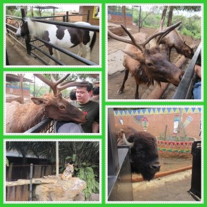 Jadi hewan2 di sini seperti unta, kuda, rusa, bison, terbiasa diberi makan pengunjung. Maka ketika kereta masuk ke area, para hewan pun langsung mendekat dan menjulurkan mulutnya mencari2 wortel di tangan bahkan tas pengunjung. Ketika pengunjung berusaha menghindari hewan yang ada di sebelah kiri dengan menggeser badan ke kanan, ternyata muncul lagi hewan di sebelah kanan. Huaaaa… seru deh !