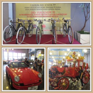 Di lantai pertama setelah pintu masuk, ada banyak sekali display kendaraan. Segala macam bentuk mobil mewah dan juga kereta kencana. Ada juga display sepeda onthel yang ternyata pernah dibuat oleh beberapa produsen motor terkenal, di antaranya Harley Davidson.