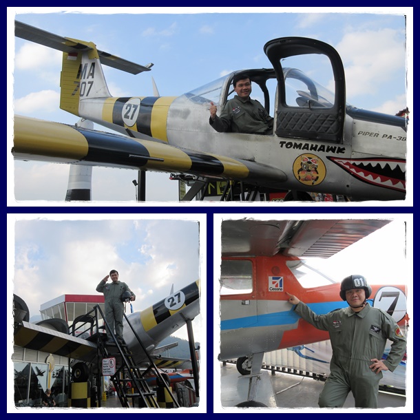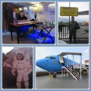 Kostum ini ada untuk pria, wanita dan anak-anak. Lengkap. Ada kostum yang warna orange (pilot yang masih belajar) dan ada yang warna hijau tua (pelatih pilot). Selain itu ada replika pesawat kepresidenan RI, seperti yang dipakai SBY dan Jokowi. Ukurannya kurang lebih 4 kali lebih kecil dari aslinya. Kita bisa masuk ke dalam pesawat dan merasakan seperti apa fasilitas di dalamnya. Ternyata lengkap dengan meja kerja, tempat meeting, bar minuman serta ruang makan yang mewah. Asik banget.