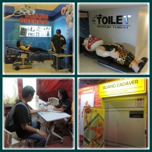 Ada teater 3D yang memutar film tentang proses pembuahan. Lagi-lagi, walaupun kami hanya berdua, film tetap diputar untuk ruangan berkapasitas sekitar 50 orang ini. Yang menarik lagi adalah Ruang Cadaver, khusus untuk usia 18 tahun ke atas. Ruangan nya dikunci dan jika mau masuk ke ruangan ini harus ditemani petugas. Menampilkan 4 spesimen manusia asli yang diawetkan dengan teknik plastinasi. Jadi masing2 tubuh manusia asli ini ditaro dalam box kaca dan pose nya berbeda-beda. Ada yang sedang balet, sedang duduk, dsb. Ada yang pria dan wanita. Semua didatangkan dari Taiwan dan dirahasikana identitasnya. Kita bisa melihat secara “asli” bagian dalam tubuh manusia, mulai dari otot nya (karena kulit penutupnya disayat dan dibuka), paru-paru (ada yang hitam karena perokok), dan semua bagian tubuh lainnya. Oya, di ruang ini tidak boleh memotret. Jadi kami tidak punya fotonya, hanya bisa cerita saja ya.