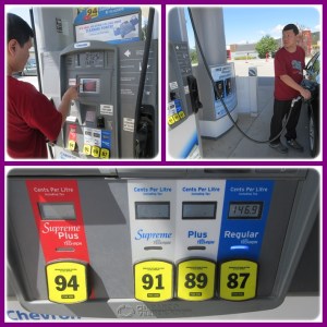 Beli bensin saat tangki tinggal setengah. Kita tidak tahu SPBU terdekat selanjutnya. Kadang jarak terdekat bisa hingga 150 km. Ada banyak sekali supplier penjual bensin : Chevron, Petro Canada, Shell, Esso, Husky, dsb. Jadi ga usah pusing dengan brand supplier nya, semua sama saja. Yang lebih penting diketahui adalah harga bensin ditentukan oleh lokasi (bukan brand) dan bisa berfluktuasi setiap harinya.