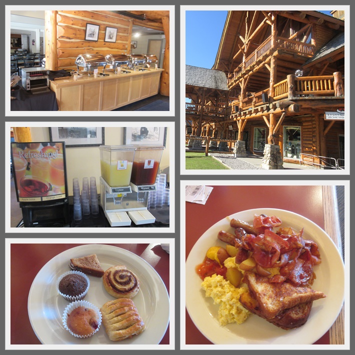 Ruangan makan pagi ini masih kosong. Hanya ada sepasang lansia dan kami. Breakfast buffet nya terdiri dari berbagai makanan dan minuman yang sifatnya self-service. Jadi bisa ambil sendiri sepuasnya. Untuk minuman tersedia kopi, teh (macam2 rasa), jus jeruk, jus apel, lemonade, sweet ice tea dan air putih. Sedangkan untuk makanan tersedia mulai dari berbagai macam roti, kue, bisa buat wafel juga, lengkap dengan berbagai selai dan topping. Ada juga berbagai jenis cereal, susu, dan salad. Lalu untuk hot food nya ada kentang panggang, sosis, smoked alberta bacon, dan scrambled egg.