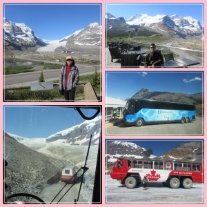 Ujung dari perjalanan ini adalah Columbia Icefield. Berada di mulut Jasper National Park. Di dalam Padang salju Columbia ini terdapat glacier yang paling mudah diakses dari glacier di seluruh dunia. Ada 6 glacier di sini, yang terlihat dari tempat wisata hanya 3 glacier, yaitu Dome, Stutfield dan Athabasca. Tiga glacier lagi tersembunyi di balik gunung2 itu. Highlight yang ditawarkan di sini adalah mengunjungi Athabasca Glacier dengan Ice explorer vehicle, bus raksasa beroda 6 yang bisa mengakses salju. Wisata ini namanya Glacier Adventure. Jika kita membeli tiket Glacier Adventure, otomatis juga mendapatkan tiket Glacier Skywalk. Jadi sudah gabungan, harganya CAD.99 per orang. Tidak bisa hanya beli Glacier Adventure nya saja, tapi kalo hanya beli tiket Glacier Skywalk nya saja boleh.