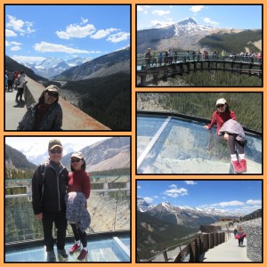 Semua turis setelah selesai menikmati Athabasca Glacier dibawa ke halte lagi. Di situ ganti kendaraan bus biasa lagi, dengan tujuan Glacier Skywalk. Di pintu masuk skywalk bisa pilih, kita mau pake audio guide atau ditemani guide manusia, hehe.. gratis. Kami pilih ditemani guide asli saja lah.. lebih enak kan. Tapi herannya hampir semua turis pilih audio guide. Jadi dari puluhan orang, hanya 4 org (termasuk kami) yang pakai guide betulan. Sepanjang jalan menuju skywalk terdapat edukasi mengenai binatang2 yang ada di area ini, termasuk fosil2 yang ditemukan di sini. Jadi kita bisa membayangkan evolusi binatang dari waktu ice age.