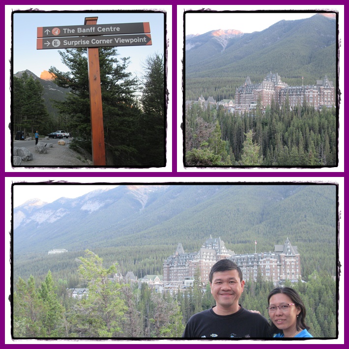 Dalam perjalanan pulang dari Hotspring ke hostel, kami sengaja lewat jalur lain di pinggiran kota. Kami menuju tempat yang namanya Surprise Corner Viewpoint. Dari sudut ini, kita bisa berfoto dengan latar belakang hotel Fairmont Banff yang megah. Tampak di kejauhan, di samping hotel tersebut ada Banff Hot Springs yang baru saja kami datangi. Dan di titik yang lebih jauh, ada jalur Banff Gondola.