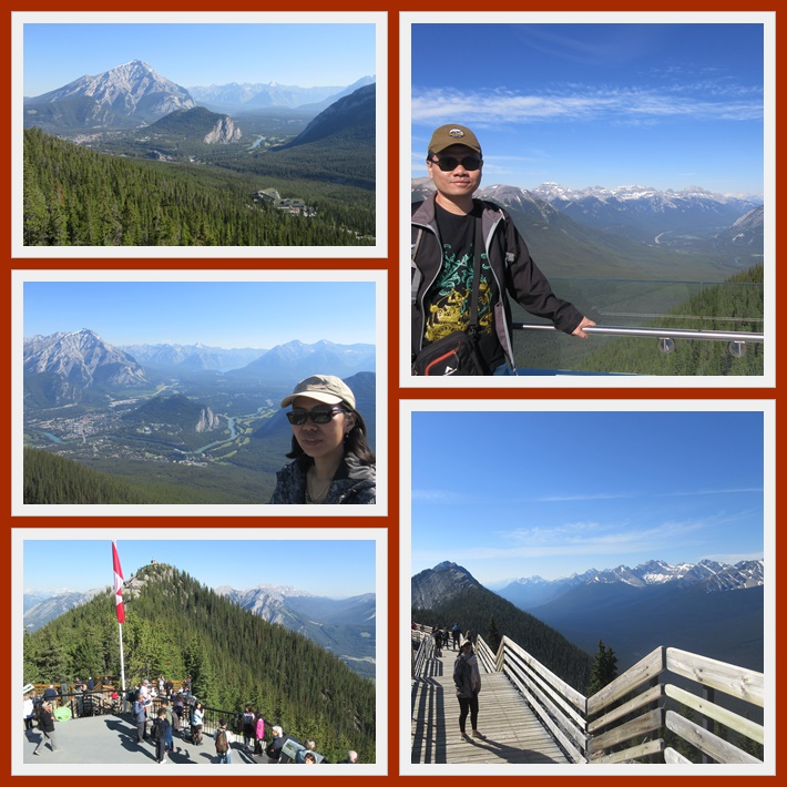 Di luarnya ada Rooftop Observation Deck dengan pemandangan 360 derajat, termasuk melihat kota Banff yang dikelilingi Bow River di kejauhan. Selain itu kami juga bisa melihat puncak2 gunung yang mengelilingi Banff. Dari situ, kami menjalani Sulphur Mountain Boardwalk, jalanan yang terbuat dari kayu, menuju Sanson’s Peak. Nama Sanson’s Peak diabadikan untuk seorang pengamat cuaca bernama Norman Sanson yang setiap minggunya naik ke puncak ini selama 30 tahun hingga tahun 1945 saat dia sudah berumur 84 tahun.