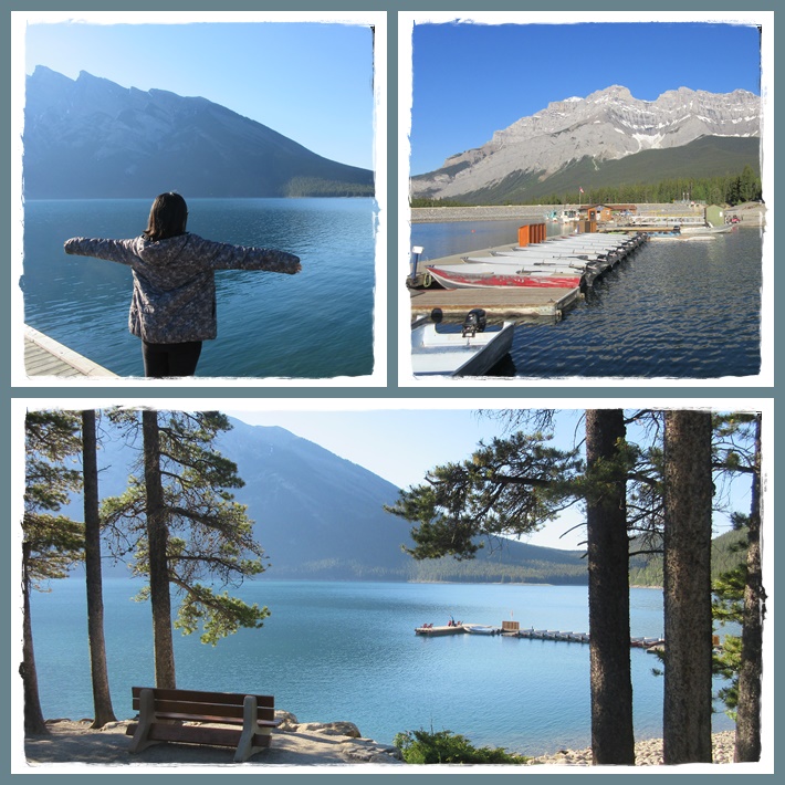Sampai di Lake Minnewanka memang masih sepi. Matahari bersinar menyilaukan mata tapi membuat danau berkilauan indah. Danau ini berbeda dari danau2 sebelumnya yang kami lihat di Canadian Rockies. Danau ini sangat besar, lebih mirip laut karena ujung2nya tidak terlihat dari dermaga. Makanya di sini disediakan cruise, saking besarnya danau ini.