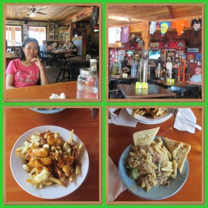 Selain nama tempatnya nyentrik, interior dalam nya juga nyentrik. Banyak pajangan baju, bendera, dan berbagai atribut model pub gitu. Ada pilihan bisa makan indoor atau outdoor. Pas lagi terik banget, jadi kami pilih ngadem dong di dalam ruangan ber-AC. Kami pilih 2 menu, poutine (kentang goreng + keju putih goreng dengan saus coklat gurih) serta pasta dengan cream carbonara & cheese. Menu pastanya benar2 uenaaaak banget. Creamy dan cheese nya kerasa banget. Yang poutine juga enak, cuma keju putih nya kami ga gitu doyan. Kami pernah makan keju putih dimasak model ini di Helsinki-Finland (dibuatin host) dan saat cruise Singapore-Malaysia. Porsinya juga besar sehingga membuat kami berdua kekenyangan berat. Harusnya pesan 1 porsi berdua cukup nih.