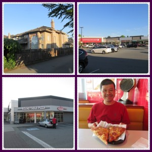 Sangat senang bisa tinggal di rumah seperti ini. Walau pun memang jika tanpa mobil pribadi, agak sulit menjangkau area ini. Kami kemudian jalan kaki di kompleks perumahan ini. Sekitar 5 menit jalan kaki, akan tiba di satu kompleks pertokoan/bisnis. Di situ ada tempat makan, supermarket, jual beli rumah, dsb. Kami cari makan nih, coba pizza saja deh. Belum makan pizza nih selama di Canada. Namanya Round Table Pizza, cukup besar dan menyolok di kompleks pertokoan ini.