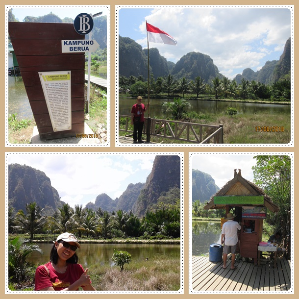 Desa Berua adalah desa wisata. Di sini tinggal penduduk setempat, lengkap dengan hamparan sawah, hewan ternak dan kolam ikan. Malah beberapa penduduk membuka warung di rumahnya untuk para turis. Capung di sini berwarna-warni loh, cakep. Petunjuk arah juga cukup jelas, walau ada yang suka salah-salah. Misalnya gua kingkong di tengah jalan berubah jadi goa kingking. Gua berlian jadi diamon (bukan diamond).