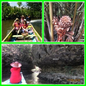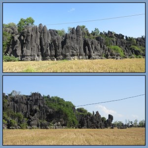 - Gua Berlian : lokasinya termasuk yang paling jauh dan ada di atas bukit karst. Kami harus membayar Rp. 20.000,- per kelompok, ke ibu yang menjaga di bawah. Nanti di atas, sudah menunggu seorang pemandu. Di sini ada karst berbentuk gajah. Ditunjukkan pula kepada kami karst yang mempunyai fosil pecahan kerang laut. Jadi diduga, dulunya air laut setinggi gua Berlian ini.